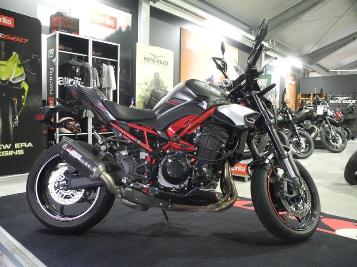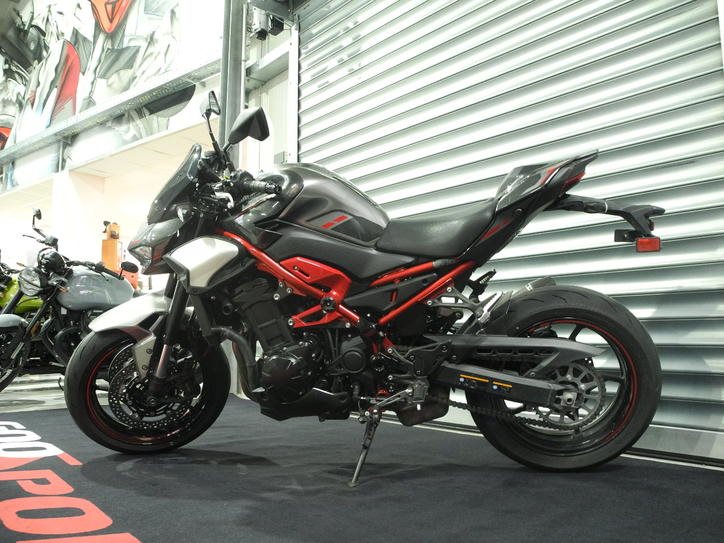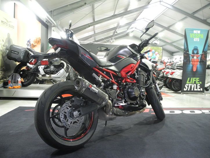 Vorführfahrzeug Kawasaki Z900 Performance Modell 2025 in grau mit rotem Rahmen vom Kawasaki Vertragshändler mit 4 Jahren Herstellergarantie ab Erstzulassung TOP-ZUSTAND, inkl. Performance-Paket montiert (Akrapovic Slip-On, Soziusabdeckung, dunkles Windschild, Tankpad), 2.220 Preisvorteli ggü. UVP (11.770) * deutsches Modell, kein Grauimport