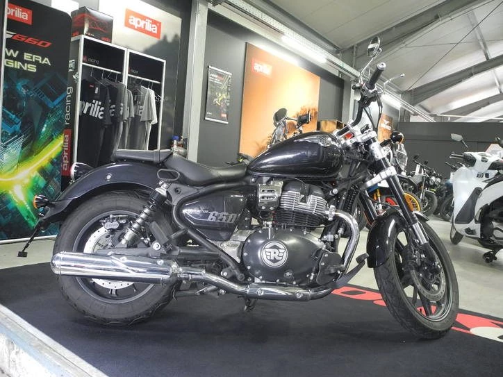 Gebrauchtfahrzeug Royal Enfield Super Meteor 650 in schwarz vom Händler mit 1 Jahr Händlergewährleistung * GUTER ZUSTAND aus 1. Hand, scheckheftgepflegt, Kundendienst kostenlos neu bei Verkauf\ \ * 1 Jahr Händlergewährleistung