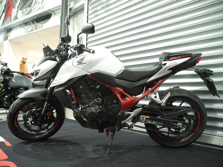 Vorführfahrzeug Honda CB750 Hornet Modell 2025 in weiß vom Honda Vertragshändler TOP-ZUSTAND, inkl. Zubehör im Wert von ca. 600 (Alugriffe, Felgenringe, Design-Fahrersitz, Soziussitzabdeckung * deutsches Modell, kein Grauimport